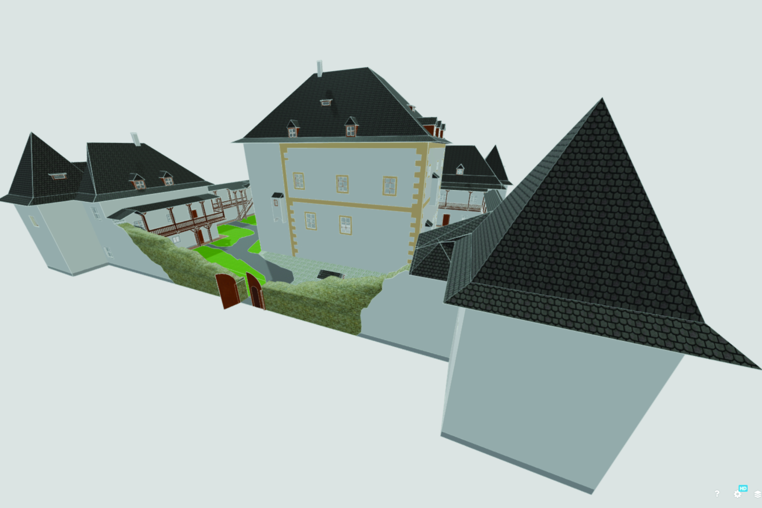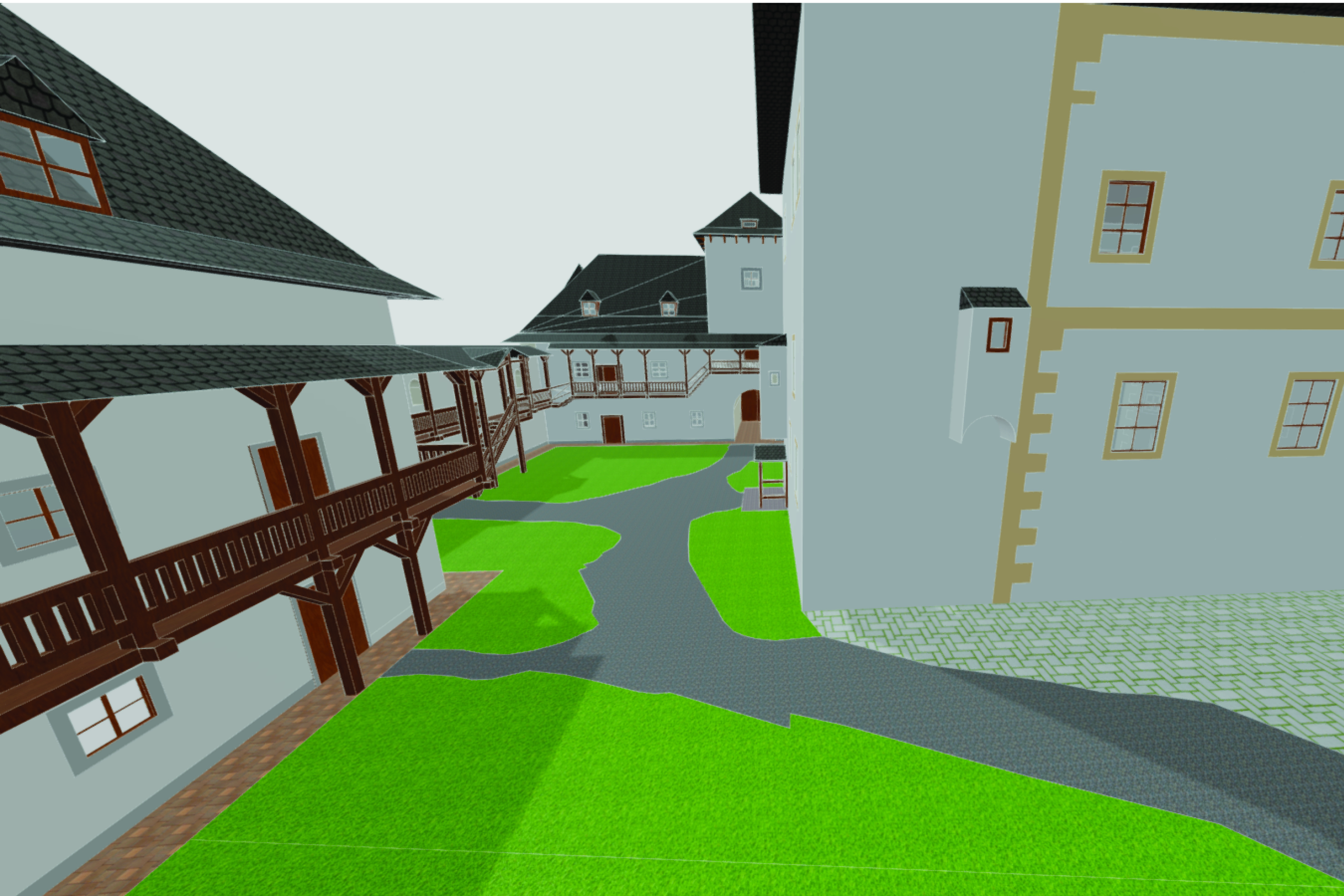 Hronsek - Nádvorie hradu; Autor: Bc. Tomáš Šuvada Softvér: SketchUp 2017